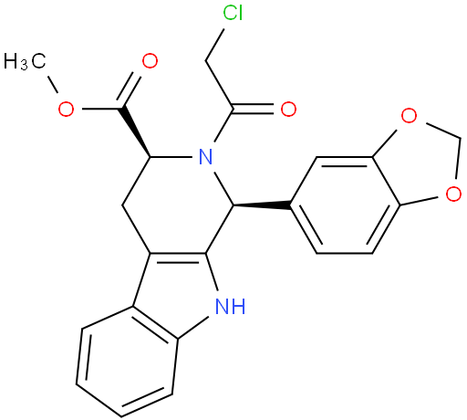 | 英文名称 | (1R,3R)-METHYL-1,2,3,4-TETRAHYDRO-2-CHLOROACETYL-1-(3,4-METHYLENEDIOXYPHENYL)-9H-PYRIDO[3,4-B]INDOLE-3-CARBOXYLATE |